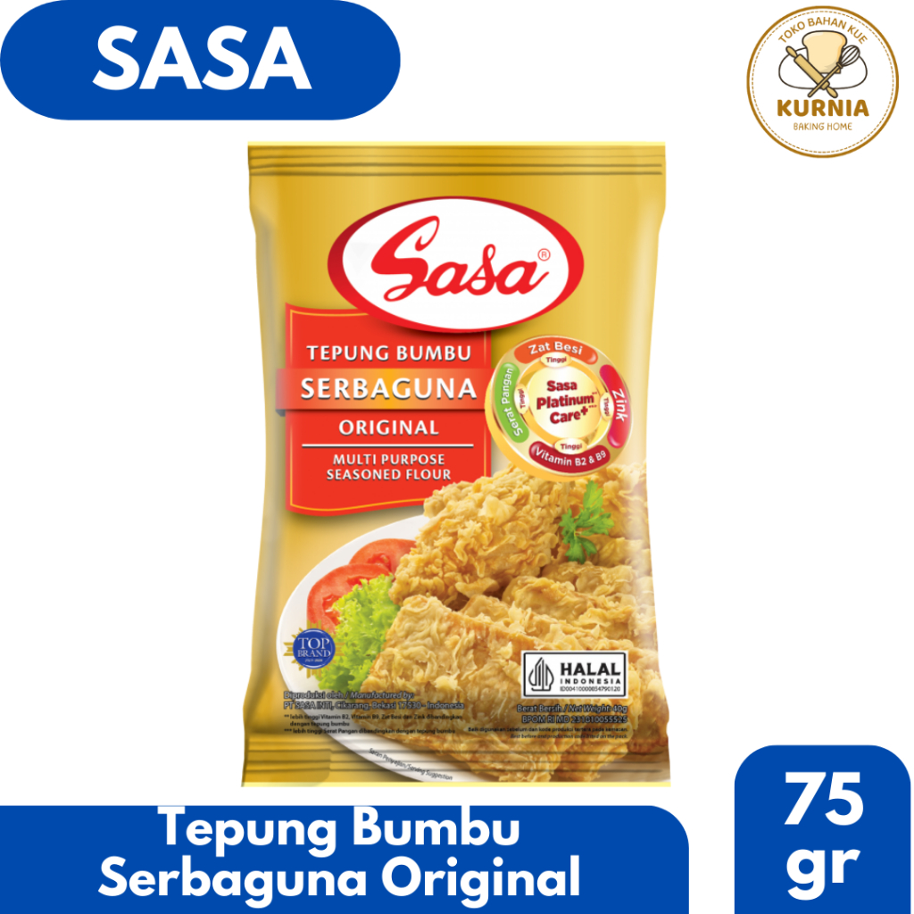 Sasa Tepung Bumbu Serbaguna Original terbuat dari berbagai kombinasi rempah pilihan yang dapat menghasillkan gorengan dengan kaya rasa, krispi, dan memiliki aroma yang khas dari bumbunya. Tepung serbaguna ini sangat praktis dan mudah digunakan tanpa perlu menambahkan tambahan bumbu lainnya.