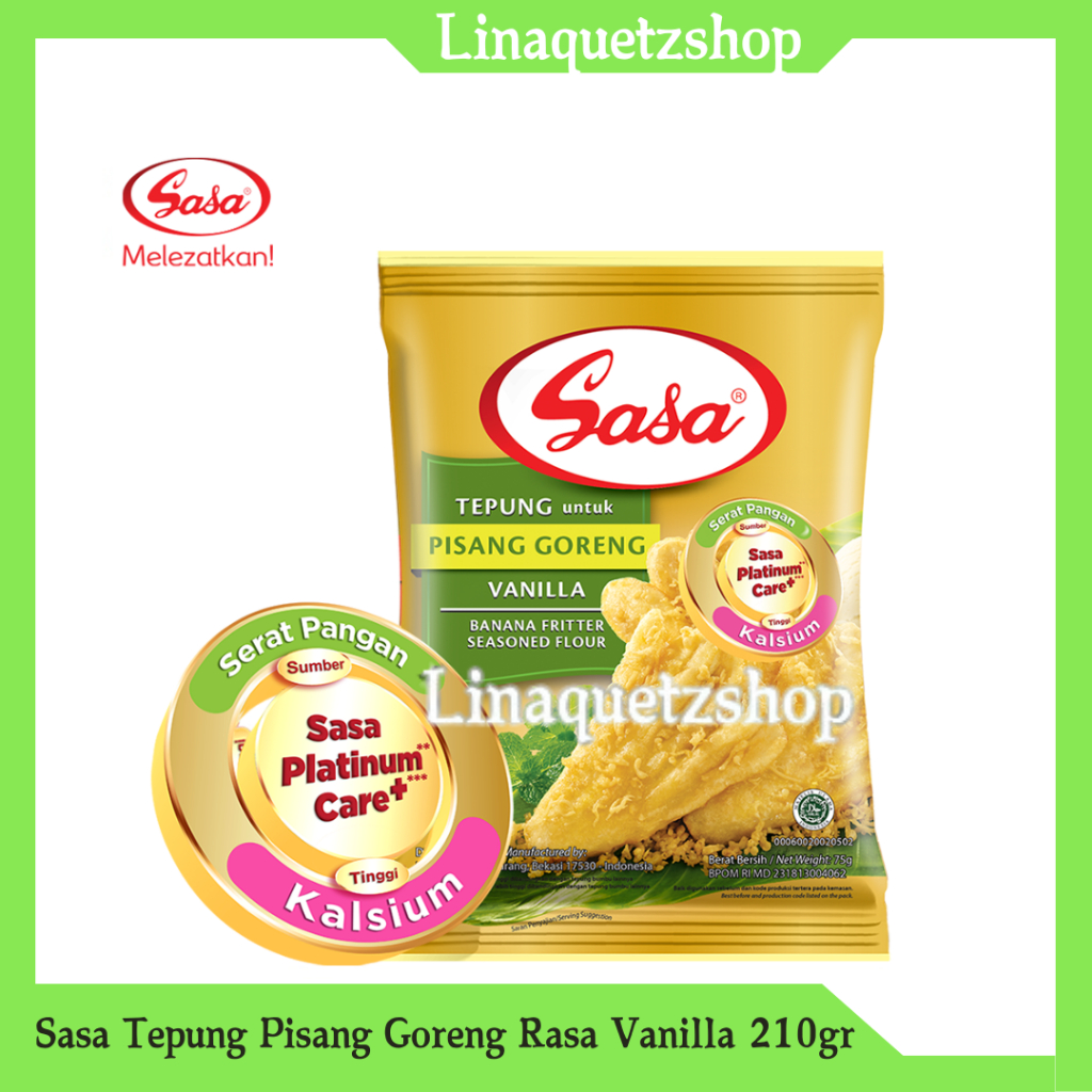 Sasa Tepung Pisang Goreng Rasa Vanila diracik dari bahan-bahan pilihan yang berkualitas lenggkap dengan telur,praktis dan tidak perlu tambahan bumbu lainnya. Dengan rasa dan aroma vanilla yang khas membuat pisang goreng. Cocok untuk menemani waktu bersantai anda.