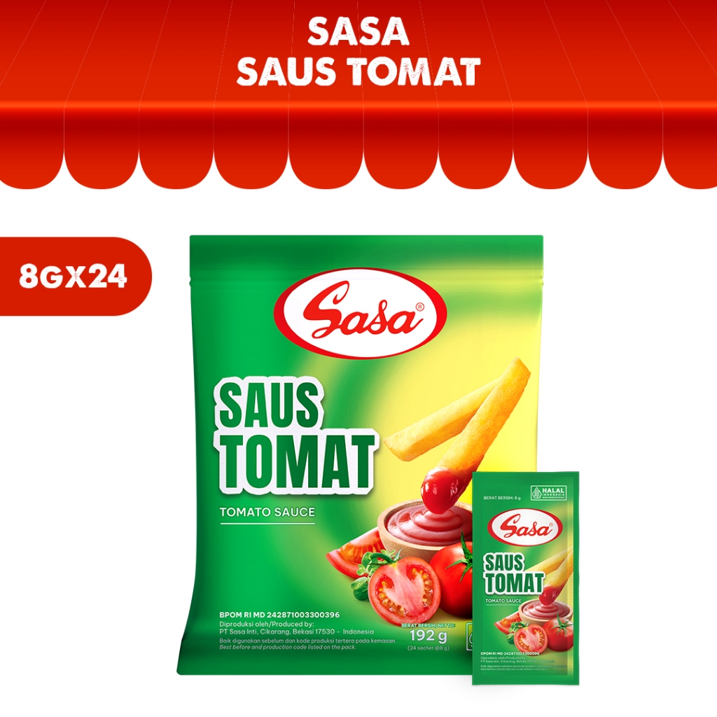 Sasa Saus Tomat merupakan saus tomat yang terbuat dari tomat segar pilihan berkualitas tinggi. Saus ini memiliki citarasa tomat terbaik yang ideal dijadikan sebagai pelengkap saat menikmati berbagai hidangan. Saus ini dapat menjadikan setiap masakan Anda lebih lezat dan nikmat.