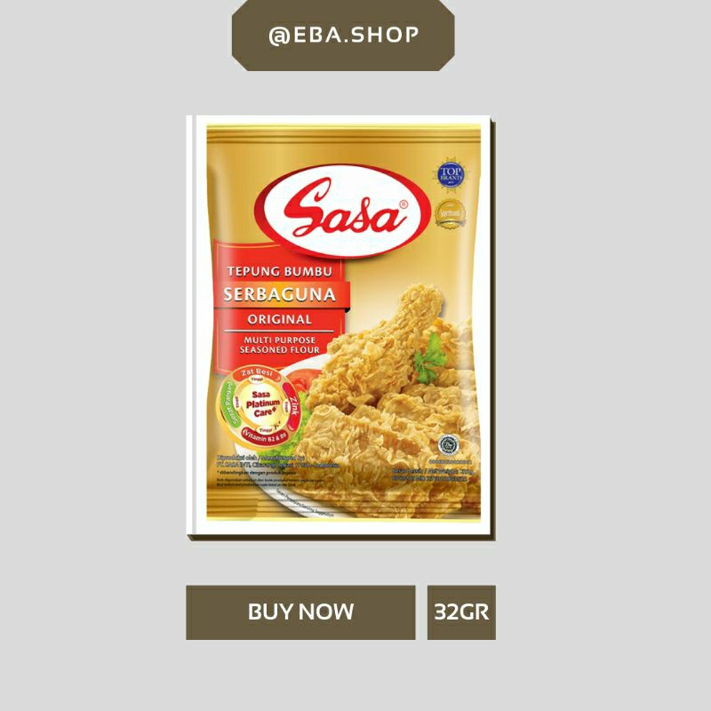 SASA tepung bumbu SERBAGUNA ORIGINAL lebih krispi dan lebih berbumbu.