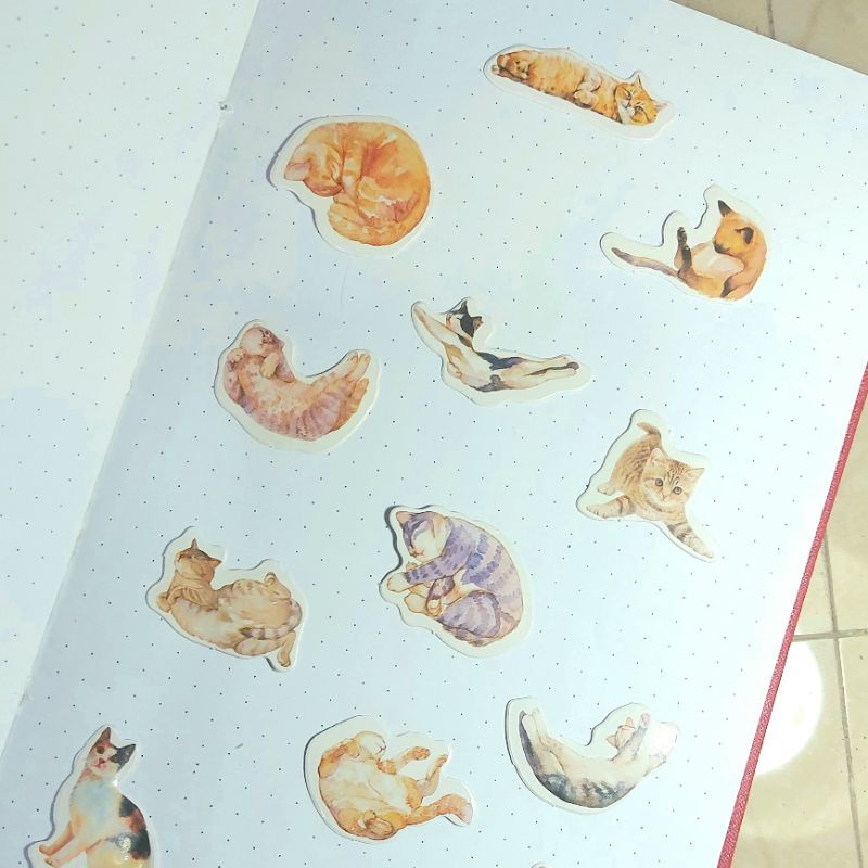 •Sticker cute aesthetic dengan gambar Kucing yg lucu cocok untuk menghias case, scrapbook, planner, bullet jurnal, dll