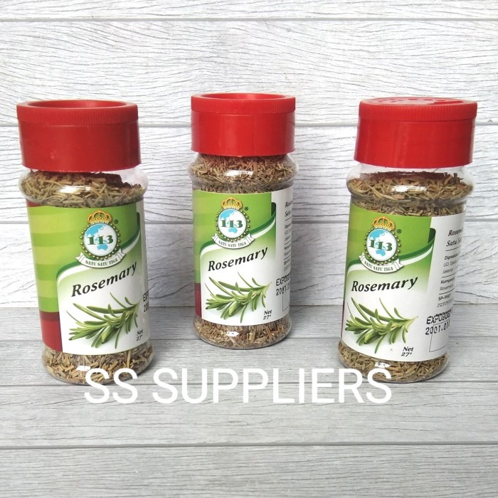 Rempah-rempah barat. Cocok untuk marinate daging ayam sebelum dipanggang maupun digoreng. Aroma rosemary tersebut bakal membuat masakan rumah anda seperti di cafe berkelas.