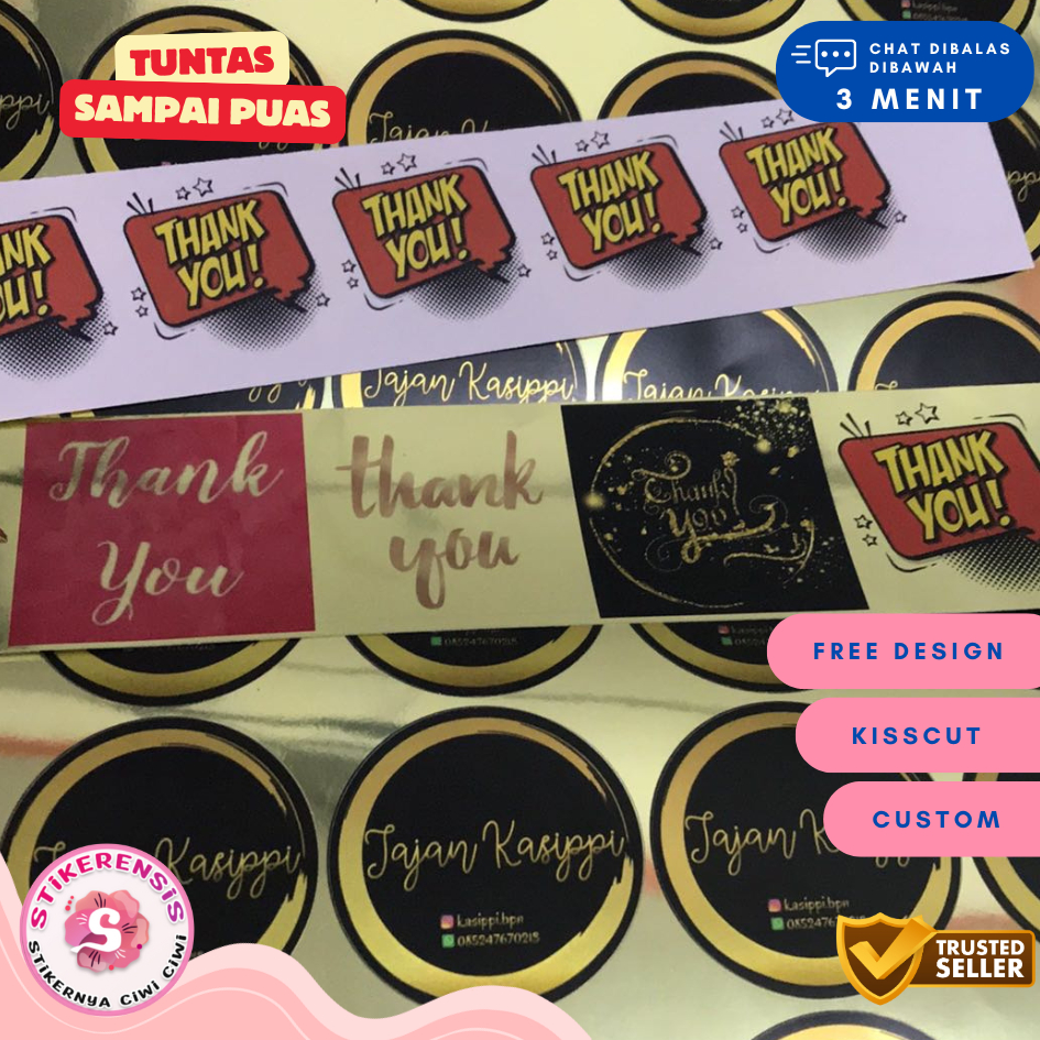 SBGS 7-10 Cetak Custom Sticker Label Gold Stiker Logo Olshop