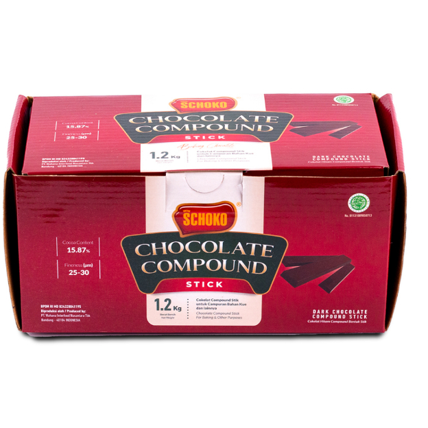 SCHOKO Dark Compound Stick merupakan cokelat compound dengan kualitas premium yang dibuat dengan cokelat dan bahan pilihan. Merupakan kombinasi dari Cocoa Powder dan lemak nabati, cokelat compound lebih mudah diproses, tidak memerlukan tempering, dan bisa dicairkan dalam microwave atau double boiler.