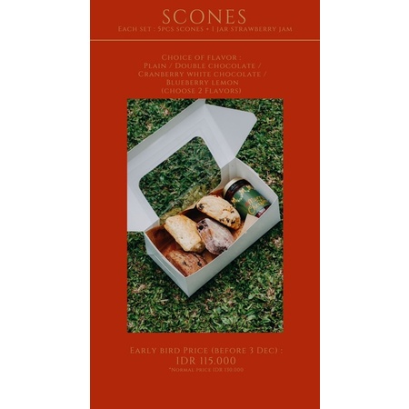 5pcs scones (pilih 2 : plain / double chocolate/ cranberry white chocolate / blueberry lemon)