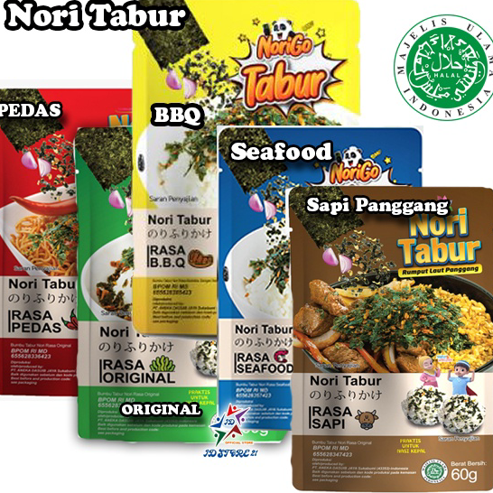 Nori Tabur ini terbuat dari perpaduan rumput laut panggang, bawang goreng dan wijen yang digunakan sebagai tambahan atau taburan untuk menu makanan, seperti Nasi Goreng, Nasi Kepal, Mie Kuah, Bubur dan Lainnya