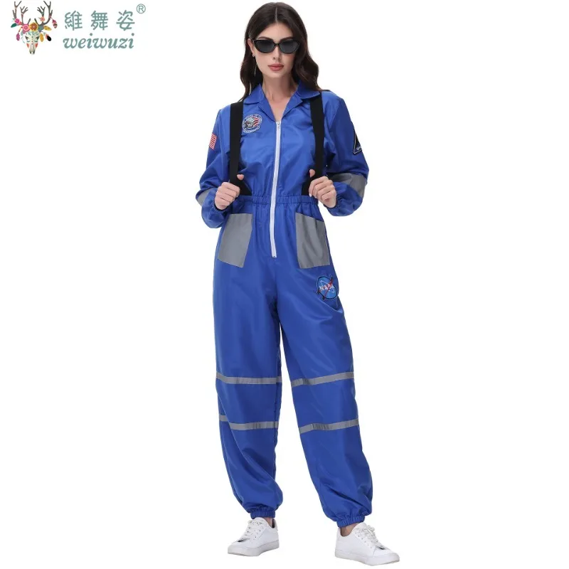 Astronaut Astronaut Blue Full Body Jumpsuits Adult Spaceman Halloween Carnival Party Fancy Cosplay Women Flight Space Costume