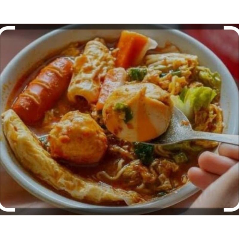 isi:sayur, sosis merah besar, dumpling, penthol, sosis merah kecil, kembang cumi, mie, makaroni, kerupuk, fishroll