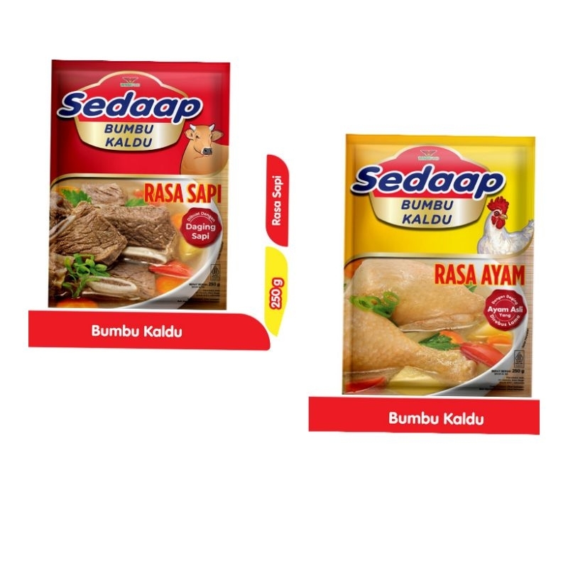 Bumbu kaldu sedaap rasa sapi atau ayam. Kemasan 250 gram. Mudah di pakai buat memasak.