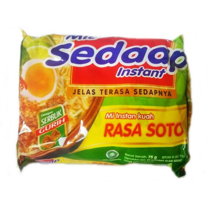 Selamat datang di toko kami Sahaja Swalayan. Selamat berbelanja SEDAP MIE RASA SOTO UKURAN 75GR Sedaap Mie Soto merupakan salah satu varian dari Mie Sedaap yang diolah dengan bumbu lengkap dan rasa jeruk nipis segar. Diproduksi dan diproses secara higienis di bawah pengawasan ketat dari para ahli, Sedaap Mie Soto juga diperkaya 7 vitamin. Tekstur mienya yang lebih kenyal dan tidak cepat lunak, lengkap dengan tambahan serbuk gurih akan memberikan kenikmatan lebih di lidah Anda. Hadir dalam kemasan cup, membuatnya lebih praktis dan mudah untuk dinikmati kapan dan di mana saja. #sedaap #sedap #mie #rasa #soto #murah