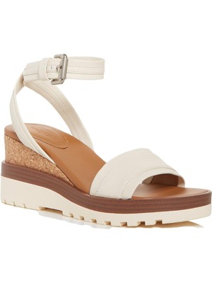 SEE BY CHLOE Женские кожаные сандалии на танкетке на танкетке цвета слоновой кости 1 на танкетке Robin, Цвет слоновой кости, SB26094