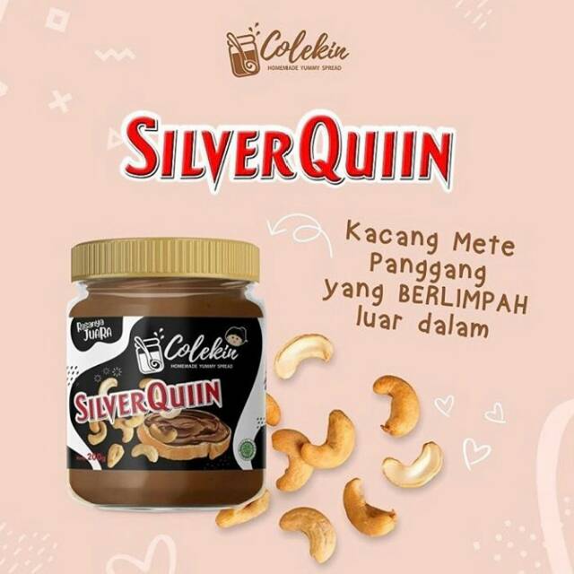 SELAI COLEKIN RASA SILVERQUIN HOMEMADE INI COCOK UNTUK DI OLESKAN DI ROTI ATAU SEJENISNYA. DENGAN KACANG METE YANG MELIMPAH MEMBUATNYA SEMAKIN CRUCHY DAN ENAK DIHINDANGKAN SAAT KAPAN SAJA.