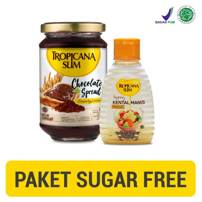 Setiap paket terdiri dari 1 botol Tropicana Slim Chocolate Spread 300gr dan 1 botol Tropicana Slim Topping Kental Manis 150ml