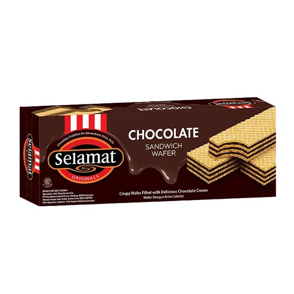 Wafer dengan krim cokelat Komposisi gula tepung terigu minyak nabati bubuk kakao susu bubuk pengemulsi lesitin kedelai garam pengembang natrium bikarbonat perisa vanili