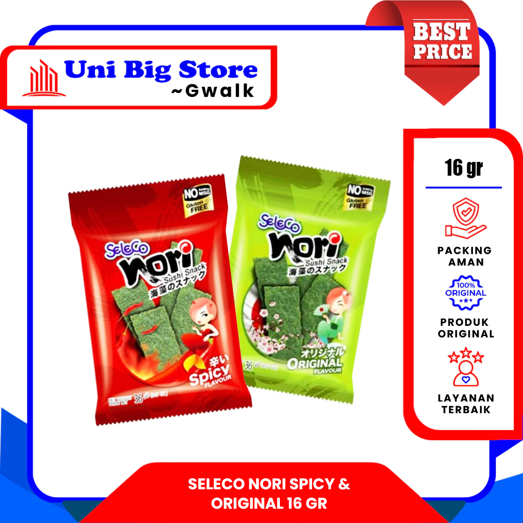 SELECO NORI SHEET CRISPY SEAWEED ORIGINAL & SPICY RUMPUT LAUT - 16 gr