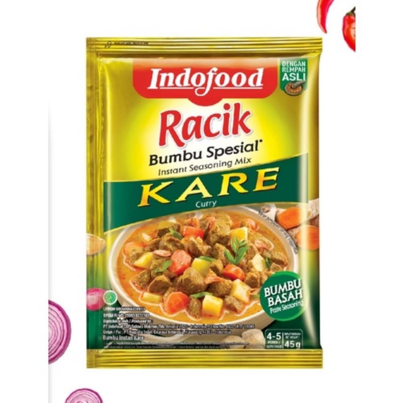 RACIK Bumbu Spesial Kare ini juga dikreasikan dengan bahan pelengkap sesuai selera keluarga. Dengan RACIK Bumbu Spesial, Sespesial Racikan Sendiri! Bisa untuk hidangan acara spesial dan sajian sehari-hari.