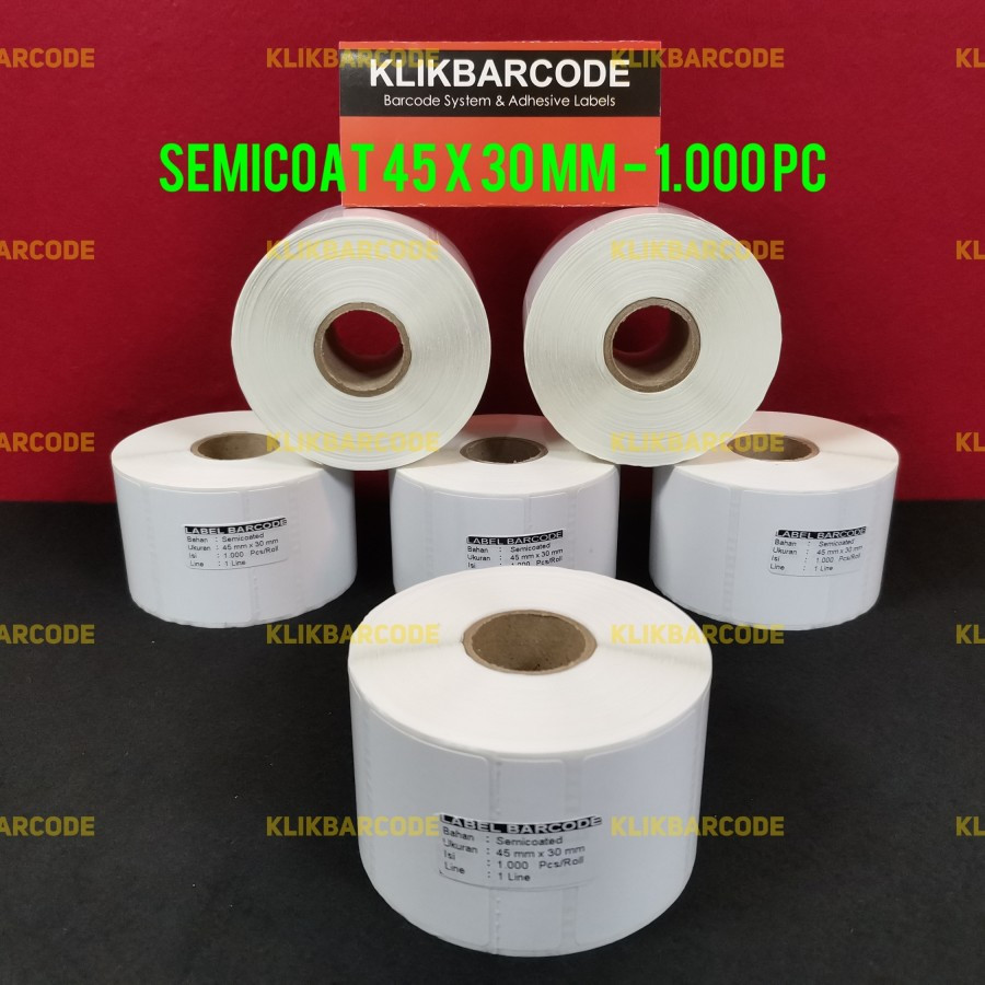 SEMICOATED STICKER BARCODE 45 X 30 MM 4,5 X 3 CM, ISI 1.000 PCS, RAPI HARGA PABRIK
