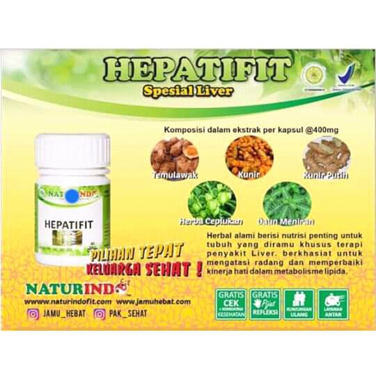 Herbal alami berisi nutrisi penting untuk tubuh yang diramu khusus terapi penyakit liver. Diproses dari tanaman sari rimpang temulawak, rimpang kunir, rimpang kunir putih, herba ceplukan, daun meniran dan 9 tanaman lain yang berkhasiat untuk mengatasi radang dan memperbaiki kinerja hati dalam metabolisme lipida. HEPATIFIT sangat efektif membantu proses penyembuhan penyakit liver. Dengan menjaga pola makan, konsumsi rutin dengan dosis tepat maka liver kembali bekerja normal.