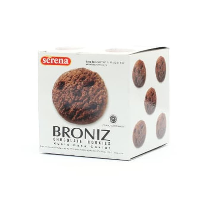 SERENA Broniz Chocolate Cookies 80gr merupakan cookies bertabur chocochips dengan rasa brownis yang sangat nikmat. Terbuat dari bahan berkualitas. Sangat lezat dan tidak mengecewakan.
