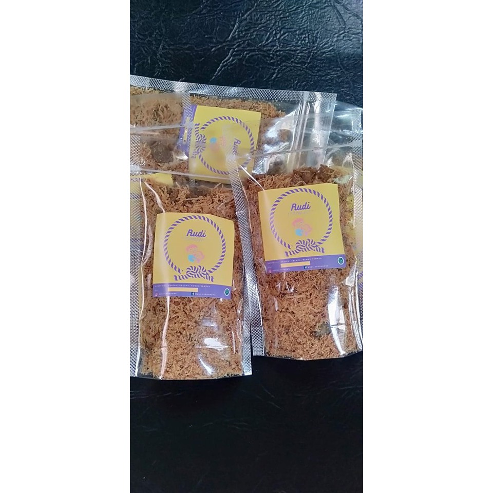 Serundeng daging Rudi terbuat dari daging sapi yang direbus sampai empuk ditambah bumbu rempah khas indonesia dicampur dengan kelapa parut yang di goreng sampai kering selama beberapa jam sehingga membuat serundeng tahan lama .