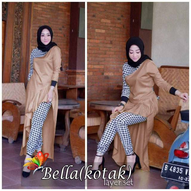 SET BELLA (KOTAK) 122.000 BAHAN MOSCREPE KOMBI KATUN KOTAK, ATASAN LD104 PJ120, CELANA PINGGANG KARET PJ86, ADA TALI IKAT PINGGANG, TANGAN KAKI KARET, KANCING BELAKANG 1, NO PASHMINA