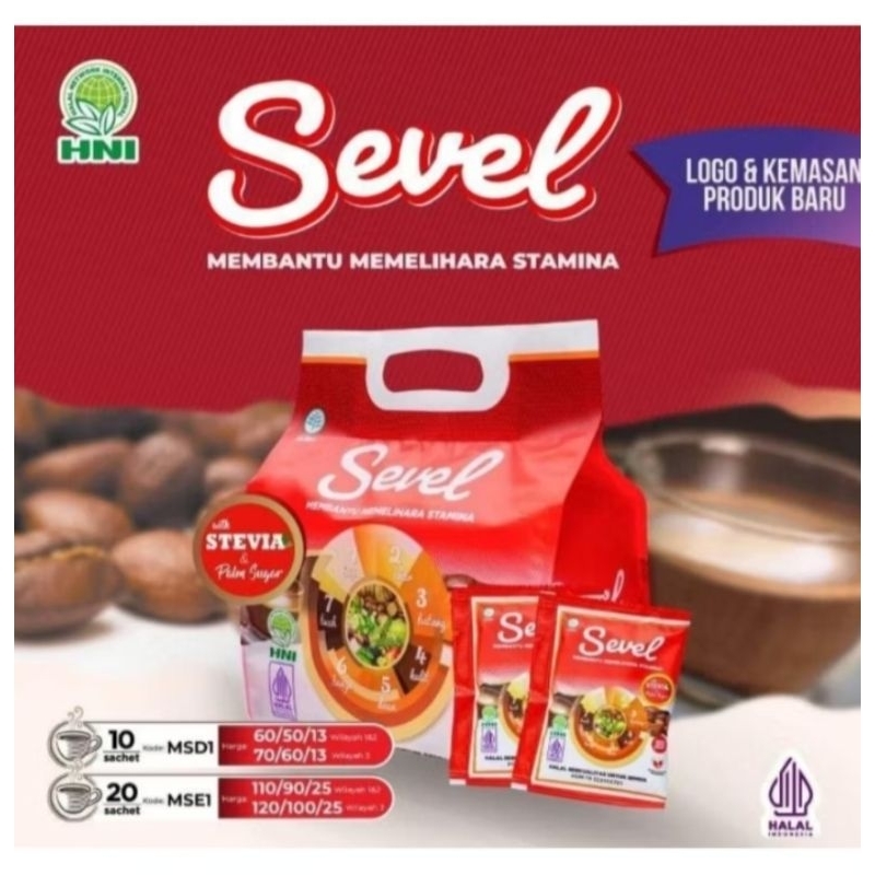 SEVEL adalah minuman yang terdiri dari kopi dengan 7 elemen tanaman : biji, akar, batang, daun, bunga dan buah.