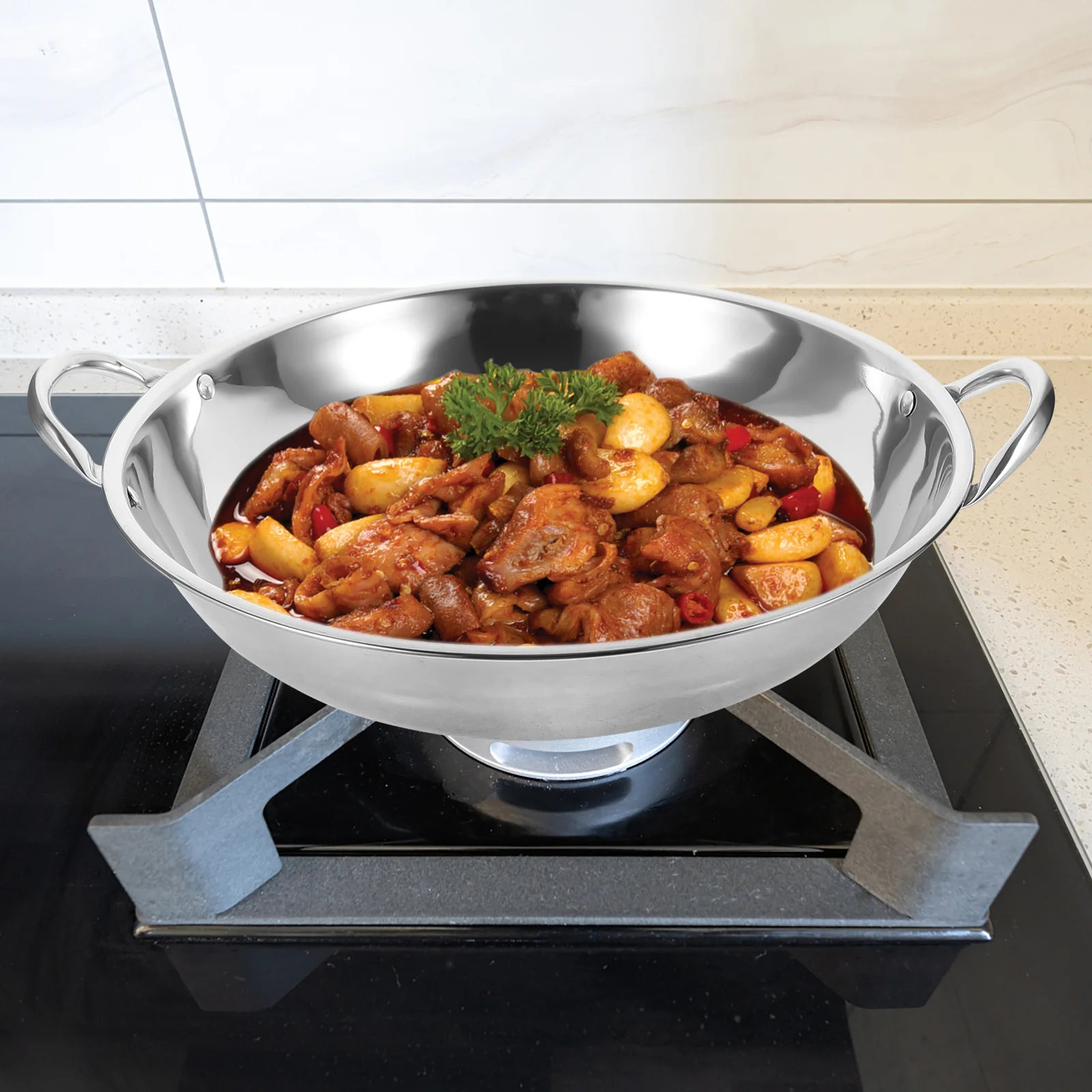 Double Handle Stainless Steel Cooking Pot Durable Wok for Household Camping Kitchen Metal Pan Cooking Tool Stock Pot