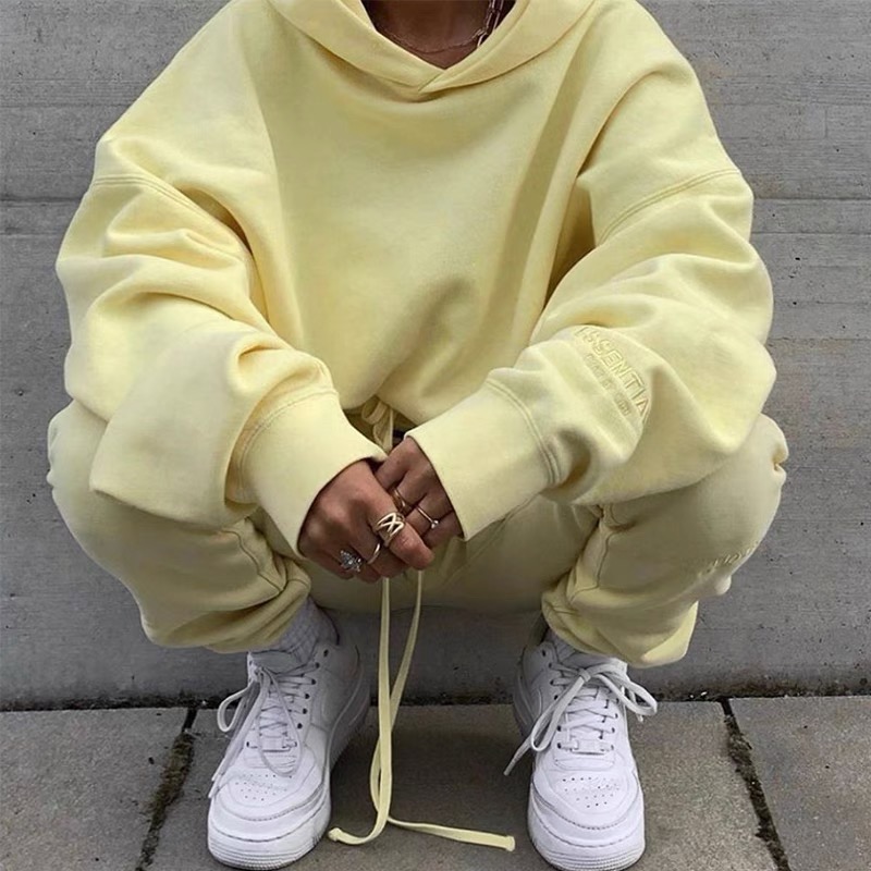 Fear of god mens hoodies oversized sport sweatshirts yellow Embroidery hip hop streetwear long sleeve men pullover warm fog essentials cotto, Black
