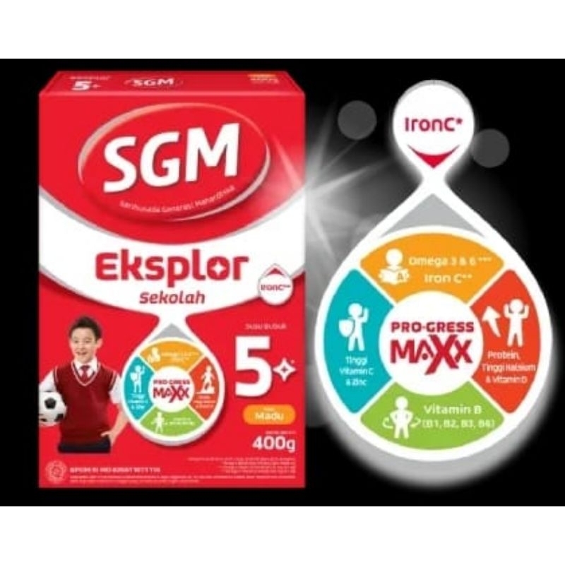 SGM Eksplor 5 Plus, satu-satunya susu pertumbuhan anak 5-12 tahun dengan IronC™ dilengkapi dengan Minyak Ikan, Omega 3 & 6, Kalsium, serta nutrisi penting lainnya.