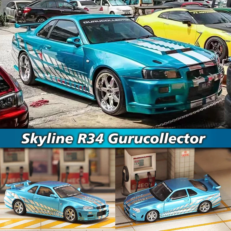 SH в наличии 1:64 Skyline GTR R34 коллектор Гальванизированный синий литый под давлением модель автомобиля коллекция миниатюрных охотников