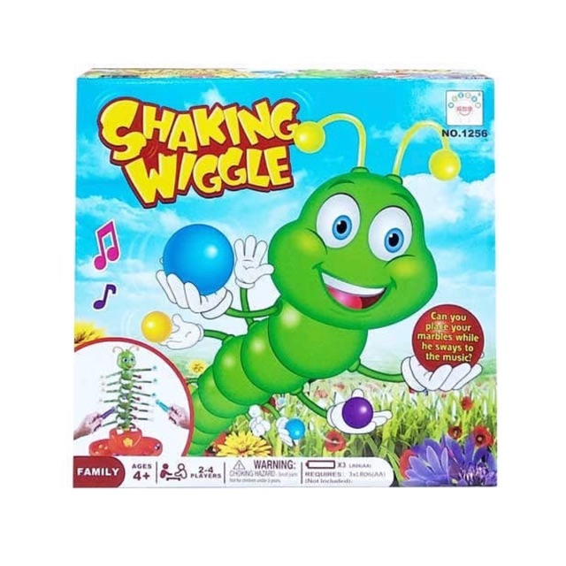 Mainan ulat kaki seribu , dengan tantangan si pemain harus menaruh ball (menggunakan jepitan sudah termasuk) yang tersedia di tangan-tangan ulat yang telat tersedia.