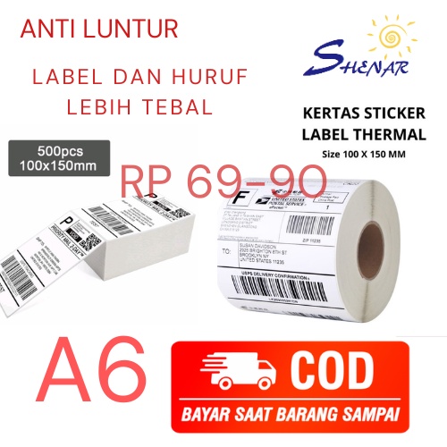 SHENAR THERMAL LABEL 100x150 Isi 350 PCSThermal Paper Roll/Lipat Lebih Tebal