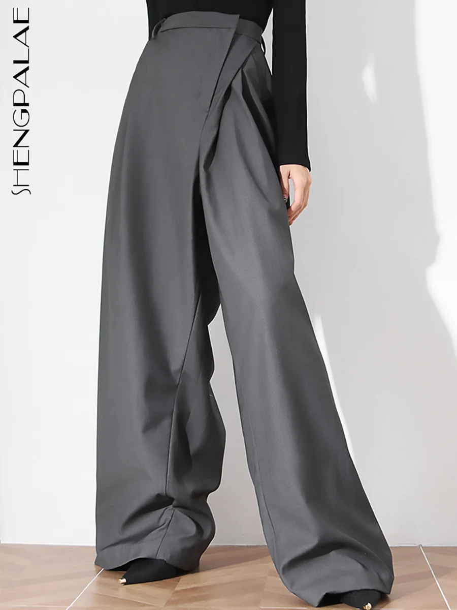 SHENGPALAE Модные свободные широкие брюки для женщин с высокой талией свободные минималистичные серые брюки женские 2023 весенняя одежда 5E8833