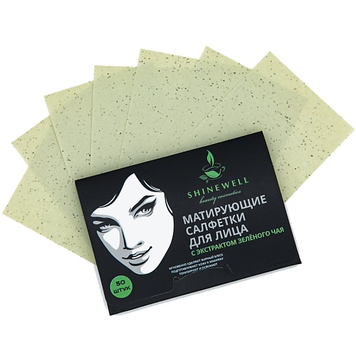 SHINEWELL Матирующие салфетки с экстрактом зеленого чая 50.0, Матирующие салфетки с экстрактом зеленого чая
