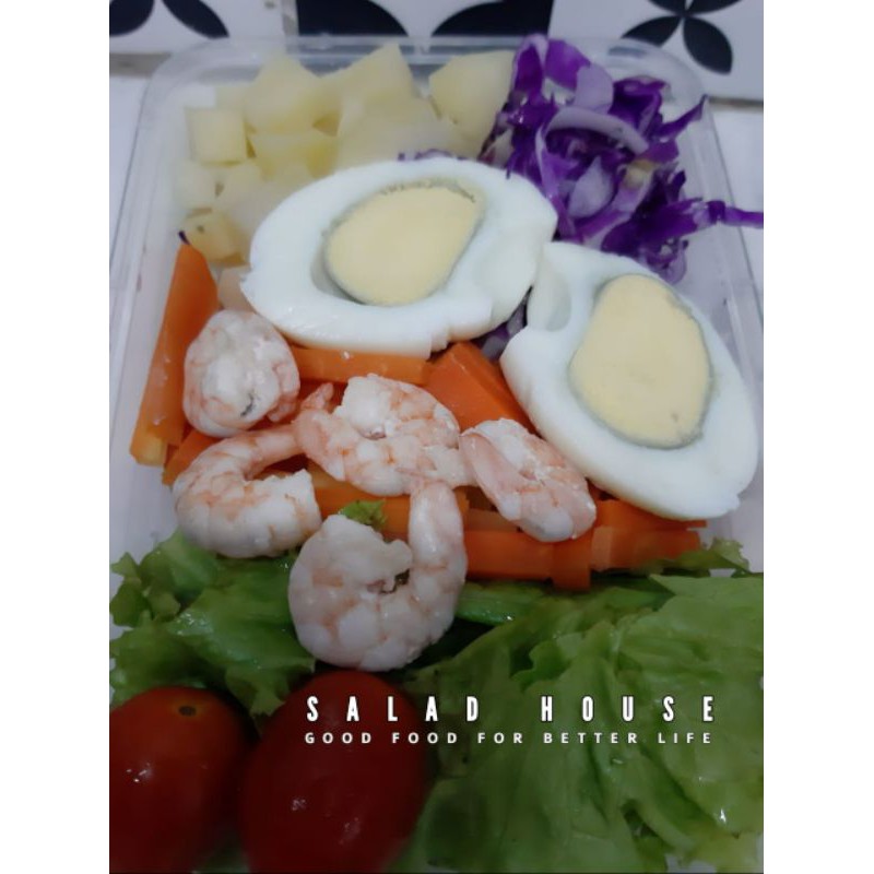 Sehatnya sayuran dipadukan dengan telur dan udang rebus... sudah pasti sehaaattttt..