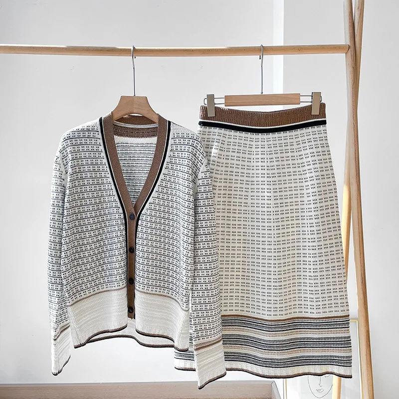 SHUCHAN 100% кашемировый дизайнерский комплект из 2 предметов вязаный кардиган + юбка однобортный костюм с V-образным вырезом в стиле преппи для ж...
