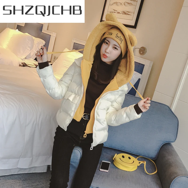 SHZQ корейская мода парки 2021 зимняя куртка женская шапка пальто осенняя Милая женская одежда короткая парка Топ Chaqueta Mujer LWL821