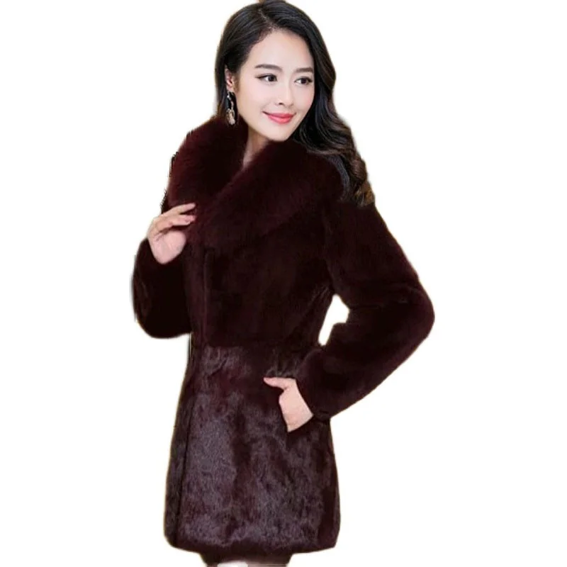 SHZQ 2021 Новое Элегантное женское зимнее меховое пальто, женская модная Свободная куртка с воротником из искусственного лисьего меха, утеплен...