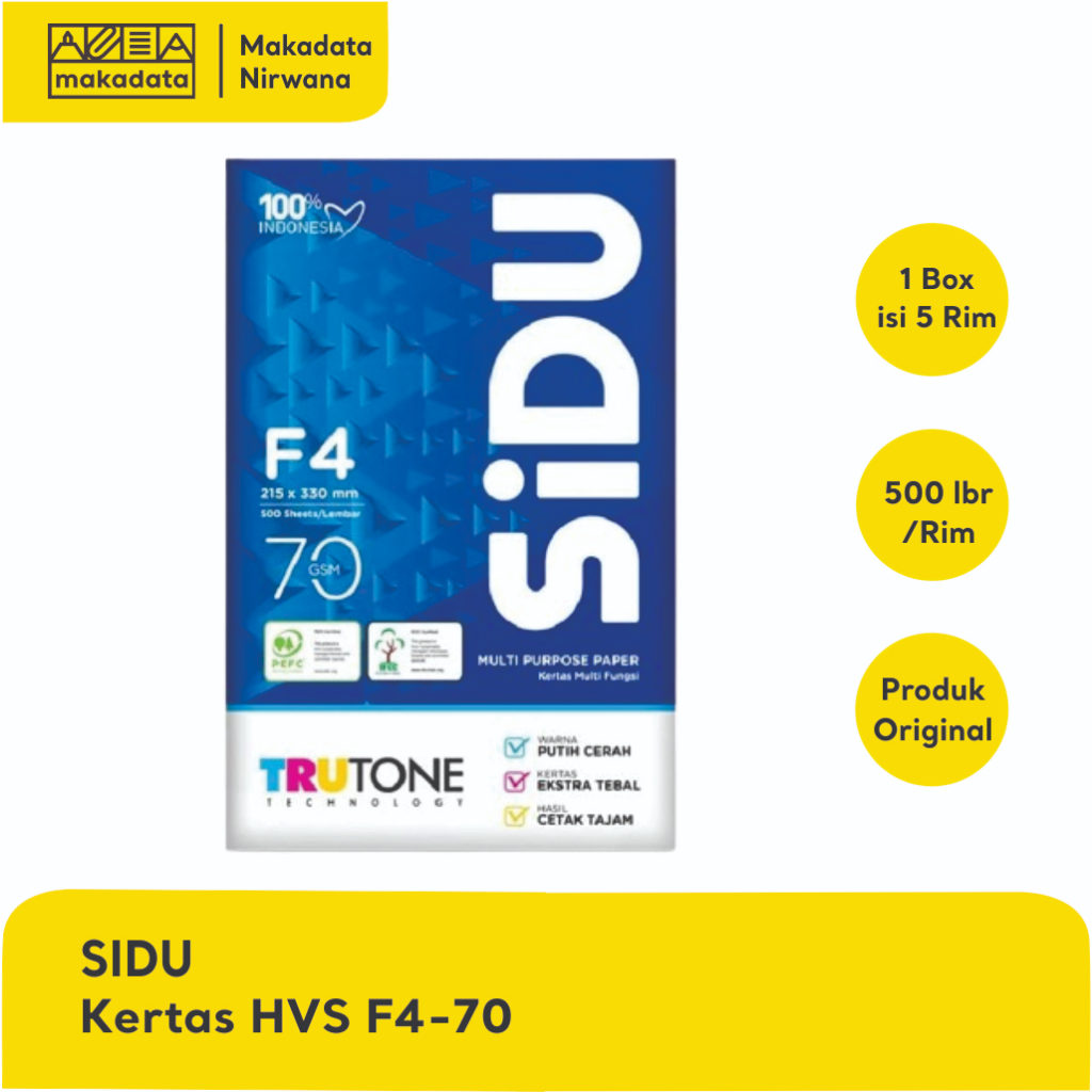 • SPESIFIKASI = Kertas HVS Sidu F4 70Gr