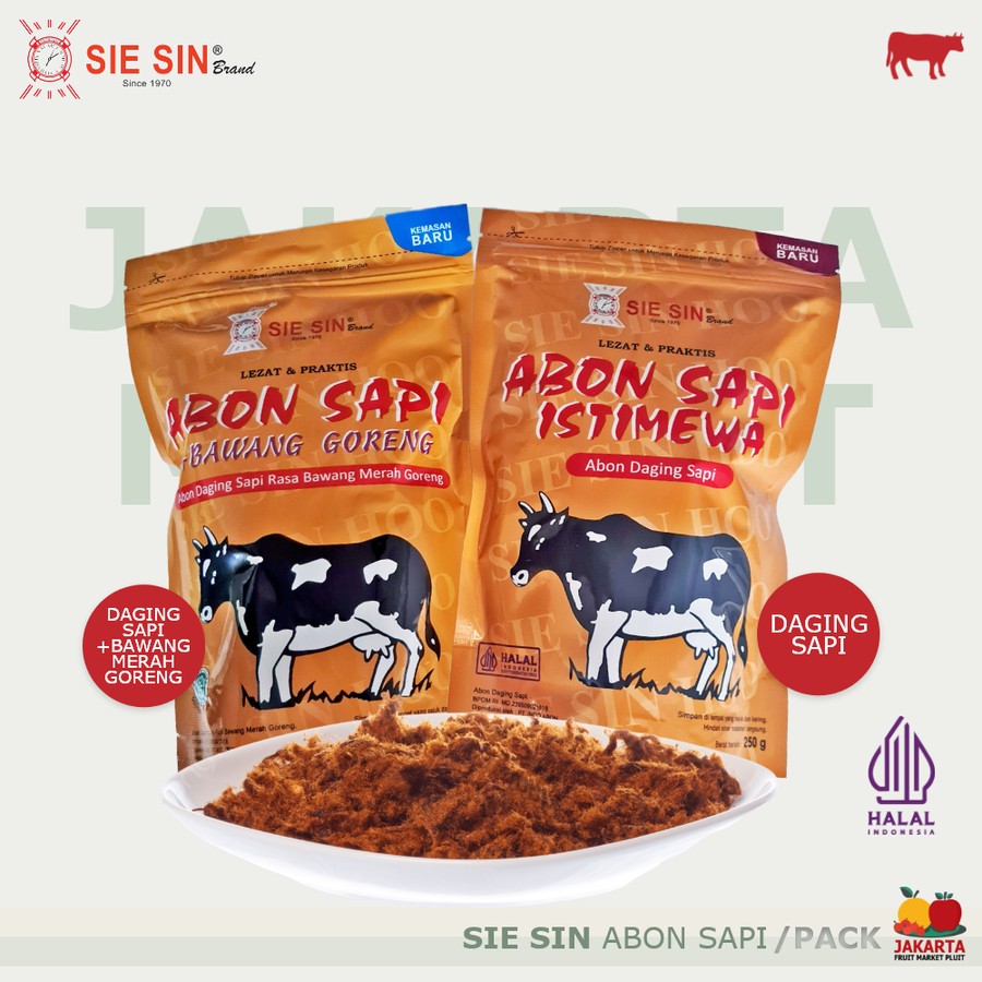 Abon sapi spesial polos/bawang/pedas “SIE SIN” 250gr HALAL