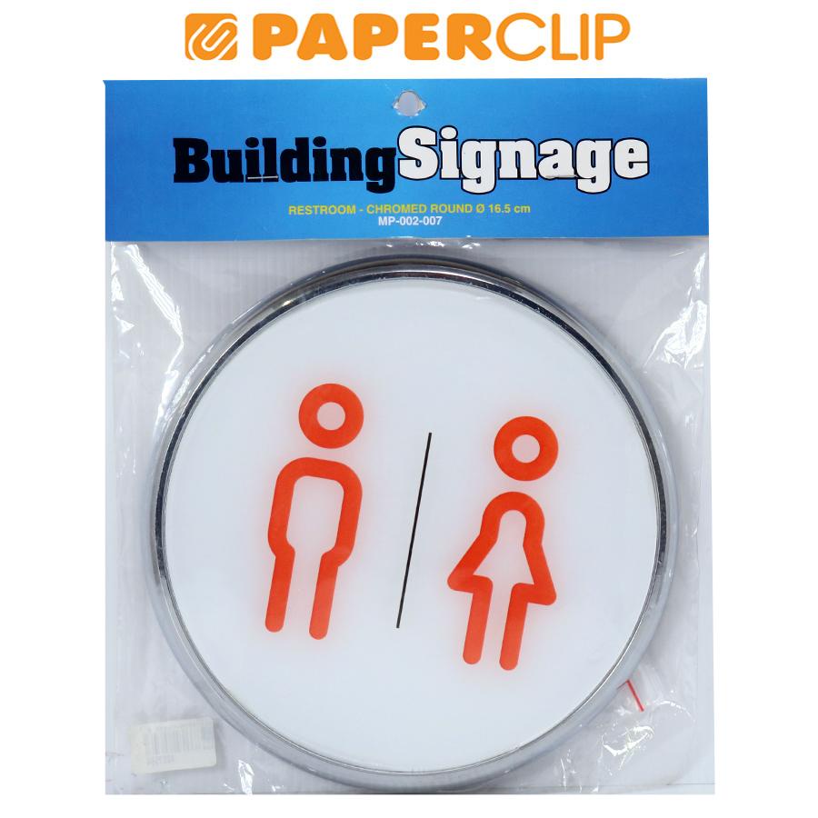 SIGN CHROMED RESTROOM ROUND 16.5