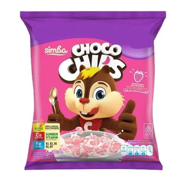 Simba Choco Chips, sereal yang dibuat dengan bahan - bahan pangan bermutu, tepat dikonsumsi oleh keluarga. Simba Choco Chips mengandung Serat, Zat Besi, dan Kalsium. tambahkan susu untuk cara lebih lezat, enak juga dimakan langsung sebagai makanan ringan.