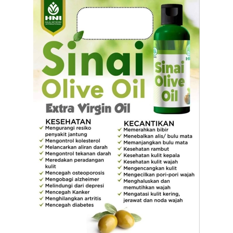 Sinai olive oil adalah minyak zaitun berkualitas terbaik (grade A) yang diproduksi secara alami dengan aroma dan citarasanya istimewa dengan kadar keasaman kurang dari 0.8%.