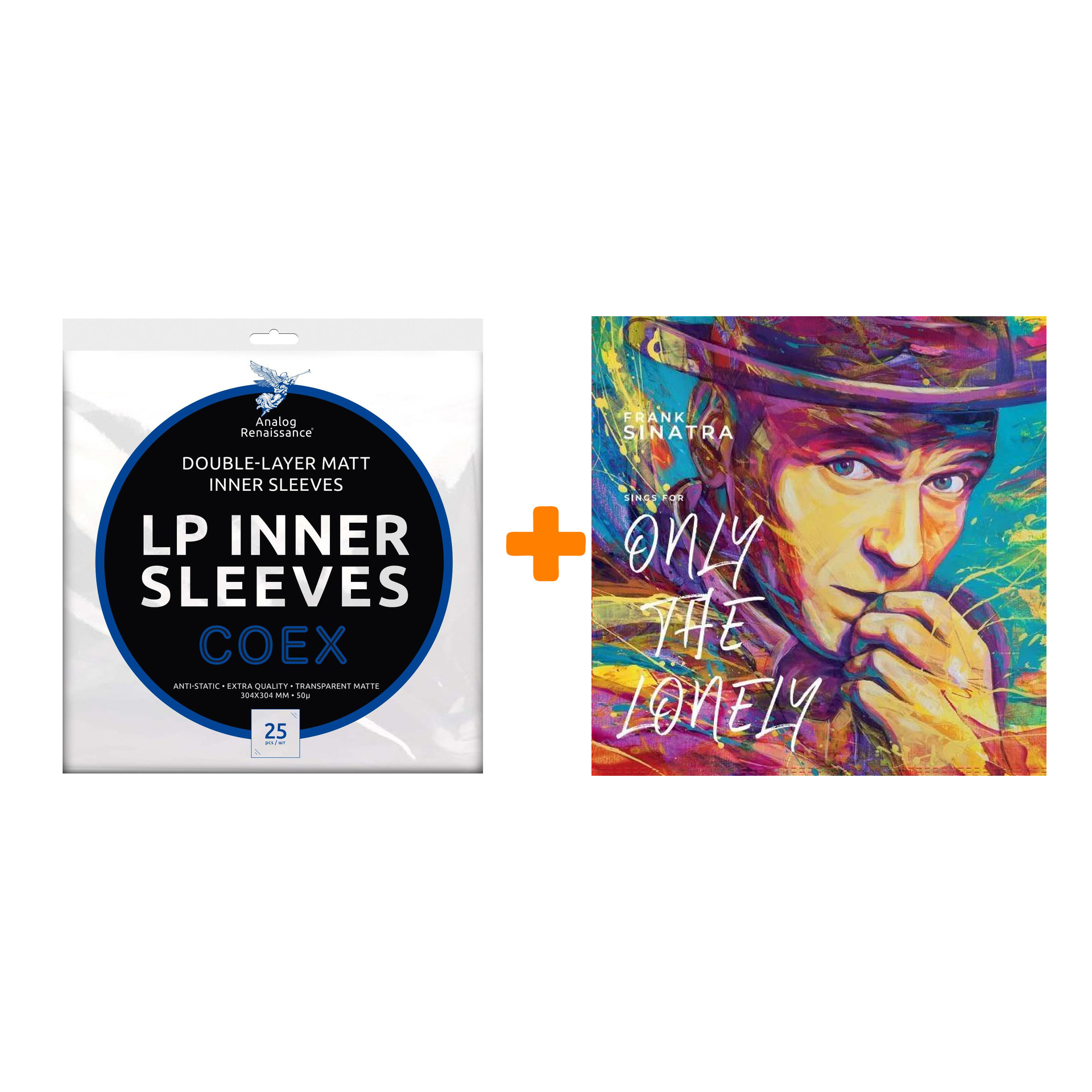 В состав набора входят:Конверты внутренние COEX для грампластинок 12" (25 шт), Frank Sinatra – Frank Sinatra Sings For Only The Lonely (LP)Конверты внутренние COEX для грампластинок 12" (25 шт):Набор содержит 25 матовых внутренних конвертов для виниловых пластинок. Многослойный материал COEX (КОЕКС) прочнее полиэтилена, он устойчив к перепадам температур, обеспечивает защиту от влаги и грязи, а также имеет антистатические свойства. Подходит для бережного хранения пластинок, устанавливается в конверт альбома без замятий и шуршания.Frank Sinatra – Frank Sinatra Sings For Only The Lonely (LP):Уникальный альбом Фрэнка Синатры «Frank Sinatra Sings For Only The Lonely» 1958 года. Альбом, первоначально вышедший в сентябре 1958 года, представляет собой коллекцию песен о неразделённой любви. Здесь есть и стандарты, и джазовые мелодии. Треки умело сыграны и умно аранжированы. Это великая поп-музыка, какой она была раньше.