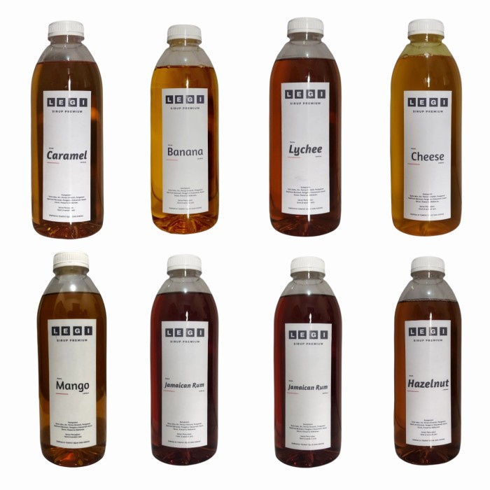 Komposisi : Gula Tebu, Air, Perisa Sintetik, Pengawet Natrium Benzoat, Pengatur Keasaman Asam Sitrat, Pewarna Makanan.