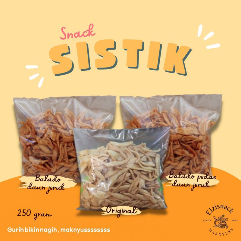 Snack Sistik Ready yaa kak isi 250 gram berbagai rasa, ada rasa Original dan Balado daun jeruk
