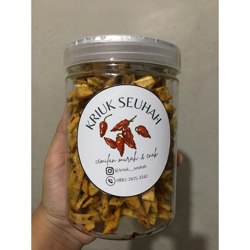 sistik renyah yang di bumbui oleh pedas cabe bubuk homemade serta di taburi daun jeruk yang mebuat aromanya makin sedap dan gurih yang bikin nagih engga berhenti ngunyah