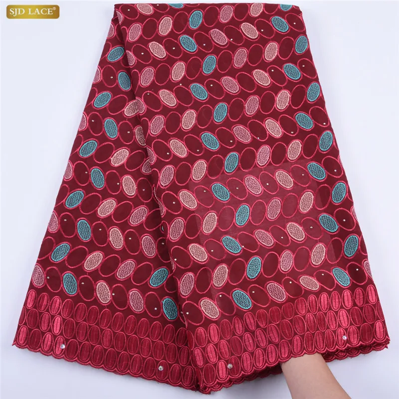 SJD кружево Новое поступление швейцарская вуаль ткань хлопок африканская ткань красный высокое качество нигерийская ткань для женщин Сваде...