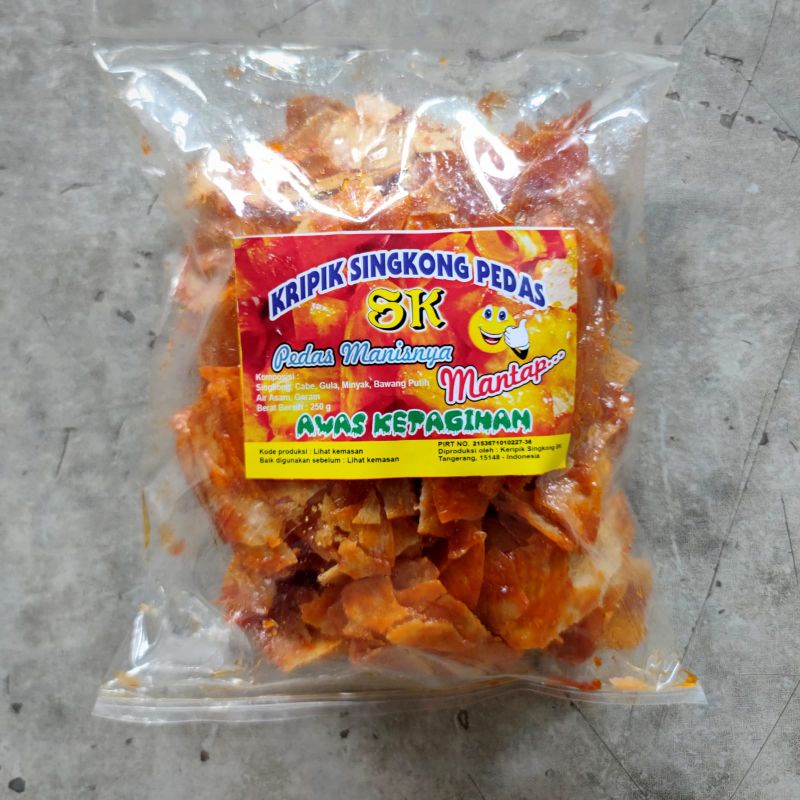 SK keripik singkong ini rasanya pedas manis, dijamin bikin nagih.