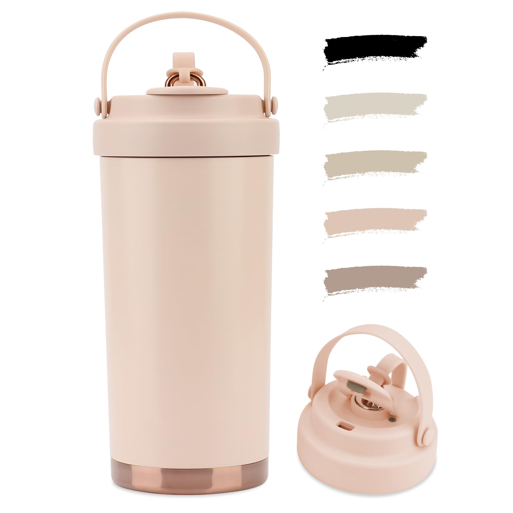 SKIASE Тамблер с керамическим покрытием для воды с прямым контактом из нержавеющей стали для холодных и горячих напитков, легко популярный для и розовой соломинкой, розовый